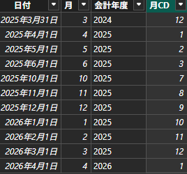 上の画像では、事業年度の開始月が「4月」の場合の月CDを作成しています。作成した月CDをもとに月を並び替えることで、表示順を変更することができます。