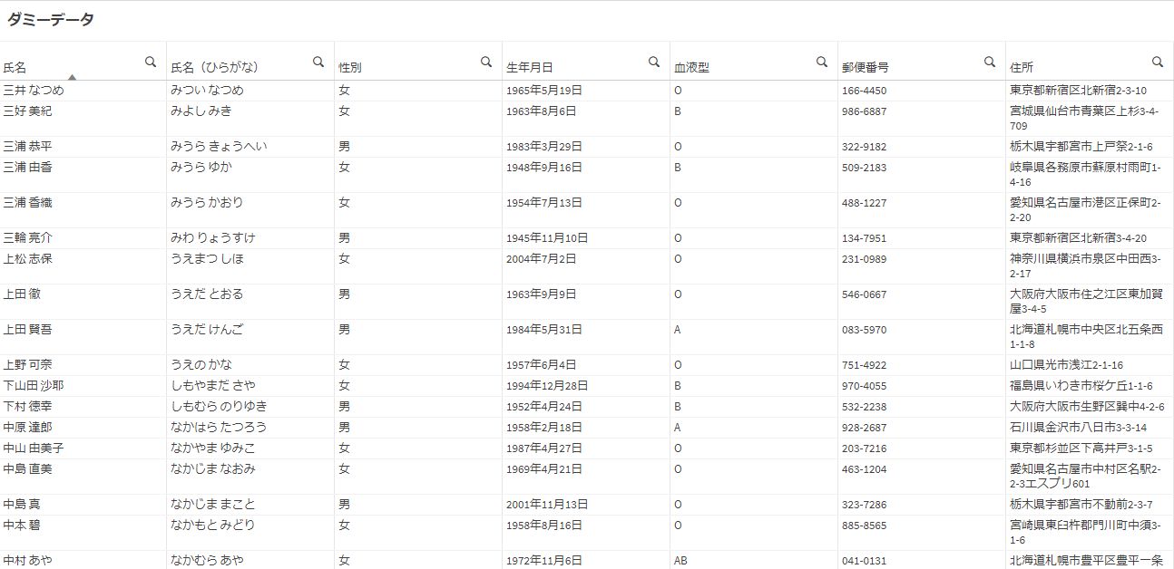 20レコードのうち8レコードがランダムに抽出されました!