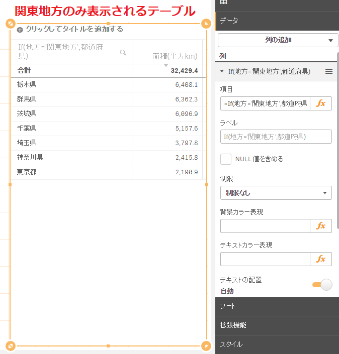 数式は「=If(地方='関東地方',都道府県)」を使用します。