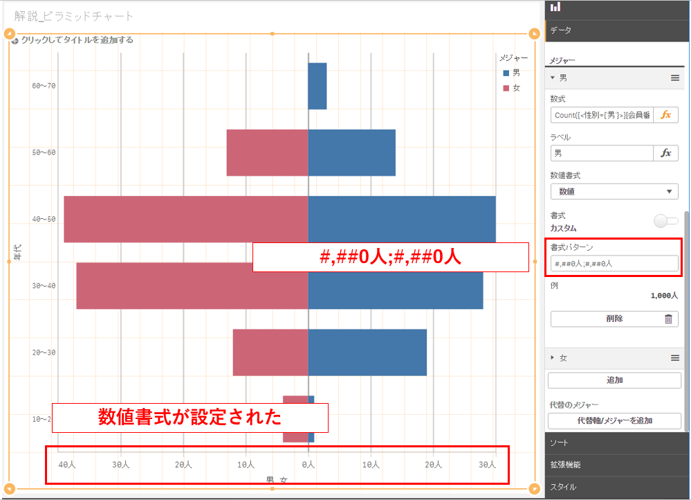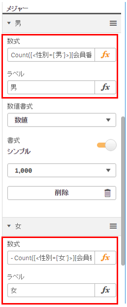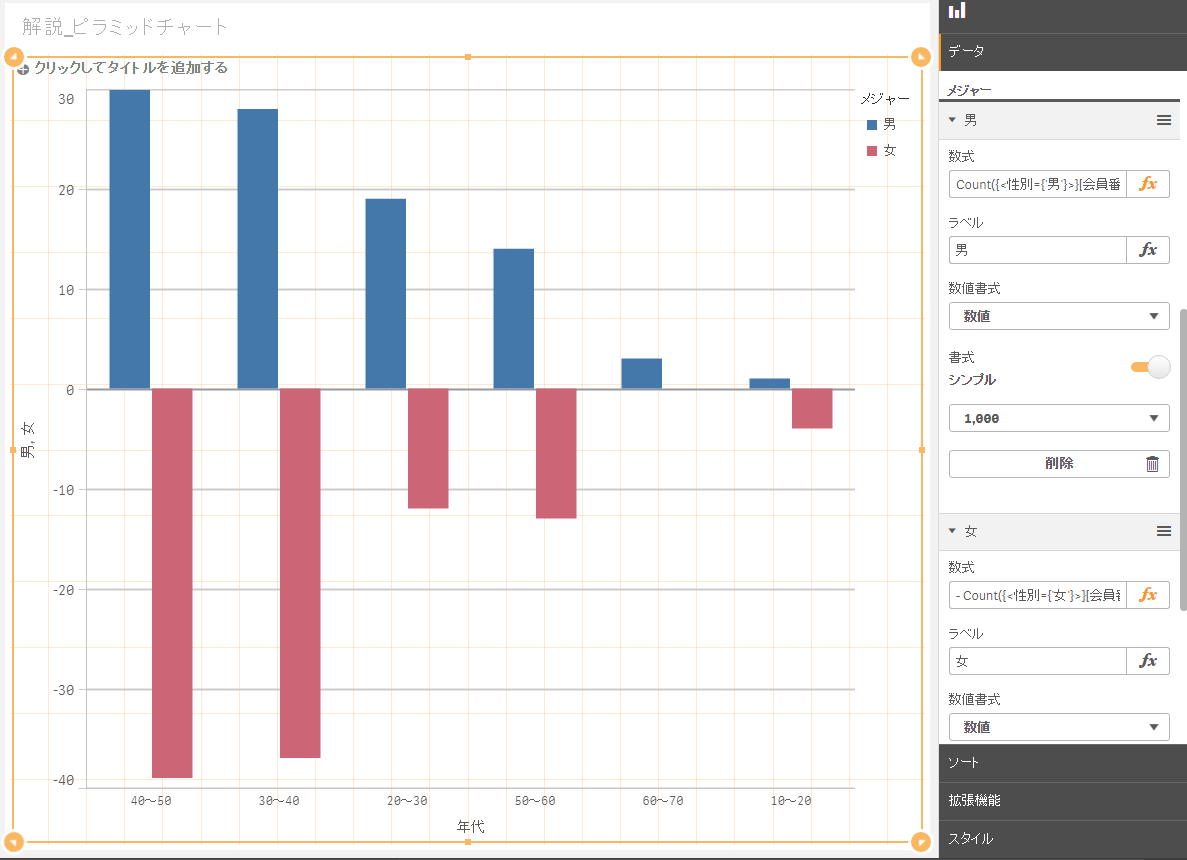 ピラミッド型チャートでは男性・女性の2本の数式が必要です。