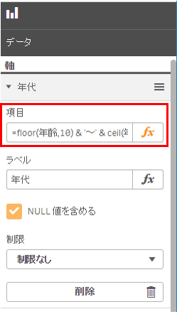 軸の項目に次の数式を入力します。
