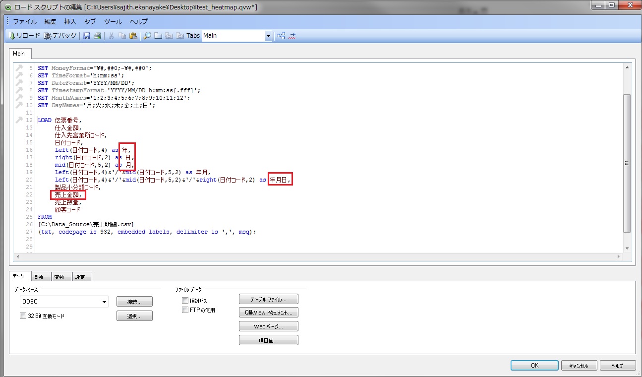 今回の記事で必要なデータソースは『年月日』、『年』、『月』、『日』、『売上金額』 です。