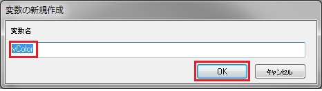4. 『変数の新規作成』画面の変数名を 『vColor』にします。