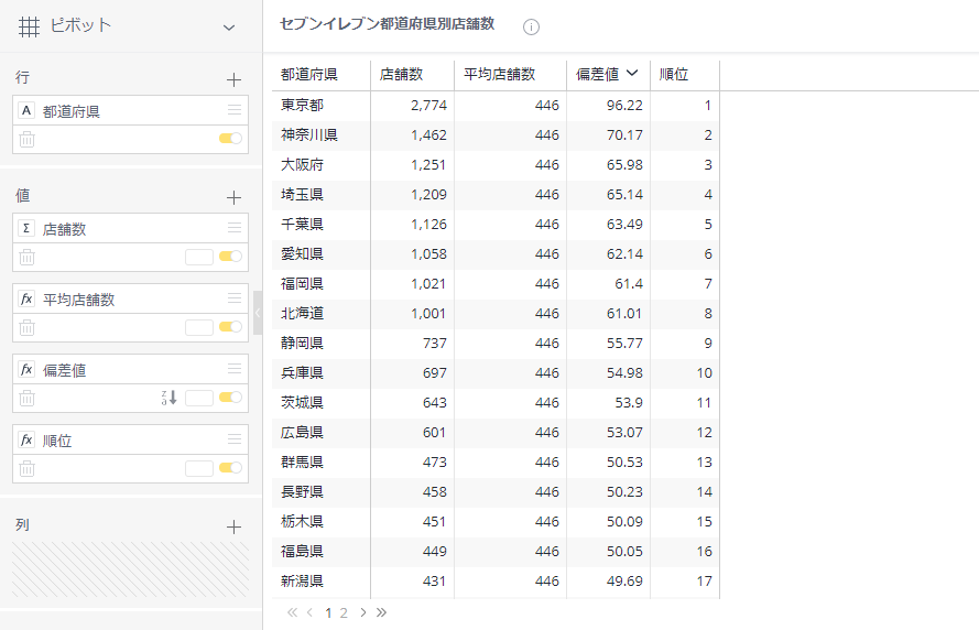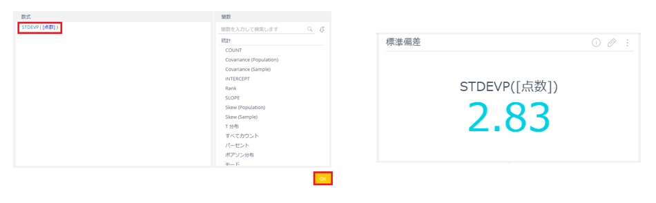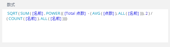 少し長くなるのでSisenseの数式については割愛させていただく。気になる方は是非試してみてほしい。なお、「標準偏差」については後ほど紹介する。