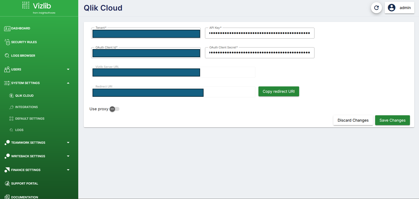 手順13. Vizlib ServerにQlik Cloudの情報を入力